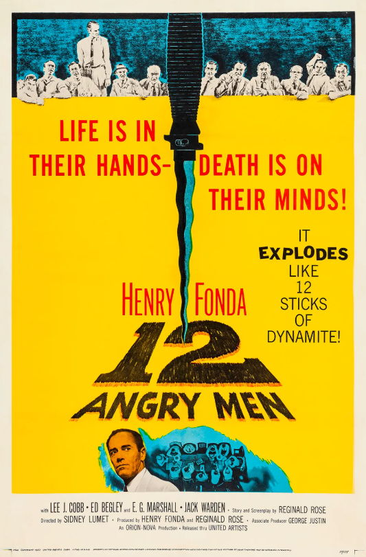 1957년 시드니 루멧(Sidney Lumet) 감독이 연출한 흑백영화 <12명의 성난 사람들(12 Angry Men)>은 법정이 아닌 ‘배심원실’에서 벌어지는 심리극을 다룬 작품입니다. 단순한 살인 사건을 놓고, 12명의 배심원들이 유죄 혹은 무죄라는 결정을 내려야 하는 과정에서 벌어지는 긴장과 논쟁을 중심으로 전개됩니다.